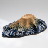 這是我手捏的火山型擴香石,它是黃玠國的護國神山,外表冷靜的火山裡面燒著熱情,滴精油在火山口上,讓清晨雨後的氣味噴發。